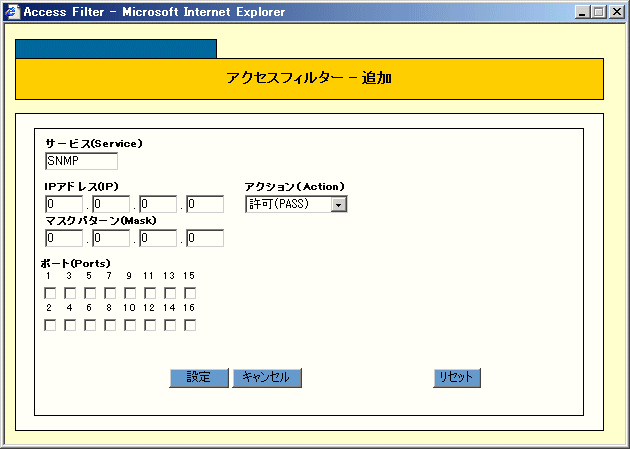 アクセスフィルターの詳細については、「運用・管理」/「アクセスフィルター」をご覧ください。